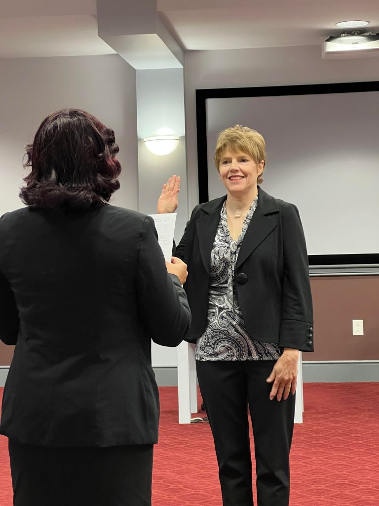 Mari Gibbs being sworn in last year for School Board.