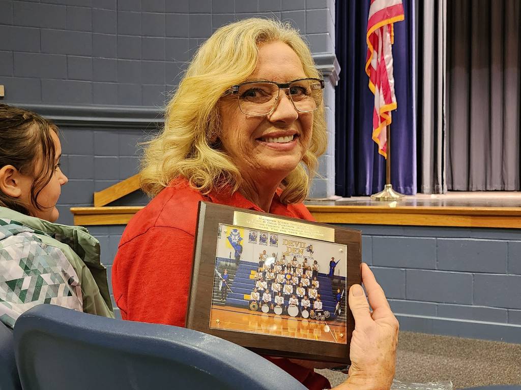 12/13/23: Angela Justice has worked very hard on the project of supporting the Mathews High School Band on behalf of the Mathews County Republican Committee! She was honored to receive the award for MCRC…Thank You Angela! The Band performance was amazing, i have to report